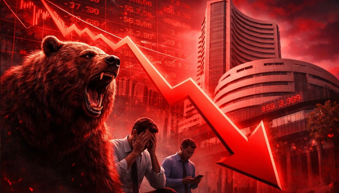 शेयर बाजार में हाहाकार: सेंसेक्स 1100+ अंक टूटा, निफ्टी 22,500 के नीचे; कच्चे तेल की आग ने बिगाड़ा खेल