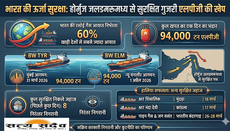 पश्चिम एशिया में जारी संघर्ष और होर्मुज जलडमरूमध्य में पैदा हुए गतिरोध के बीच भारत ने अपनी ऊर्जा आपूर्ति को सुरक्षित बनाए रखने में एक और बड़ी सफलता हासिल की है। भारतीय ध्वज वाले दो विशाल एलपीजी टैंकर, BW TYR और BW ELM, युद्ध-प्रभावित क्षेत्र से सुरक्षित बाहर निकल चुके हैं और अब भारतीय तटों की ओर बढ़ रहे हैं।