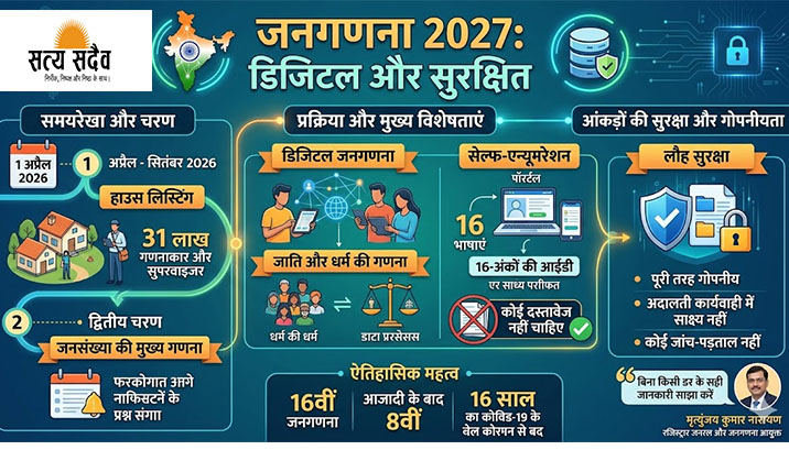 उल्लेखनीय है कि देश में हर 10 साल में होने वाली यह प्रक्रिया कोविड-19 महामारी के कारण टल गई थी। पिछली जनगणना 2011 में हुई थी। यह आजादी के बाद की 8वीं और देश की कुल 16वीं जनगणना है। आयुक्त ने नागरिकों से अपील की है कि वे बिना किसी डर के अपनी जानकारी पूरी सच्चाई के साथ साझा करें।